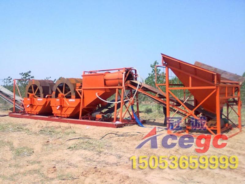 【产品简介】:轮斗洗石机是国内砂石设备行业实际情况研制的高效洗沙设备,它具有洗净度高,结构合理,产量大,洗沙石程中沙子流失少等特点。